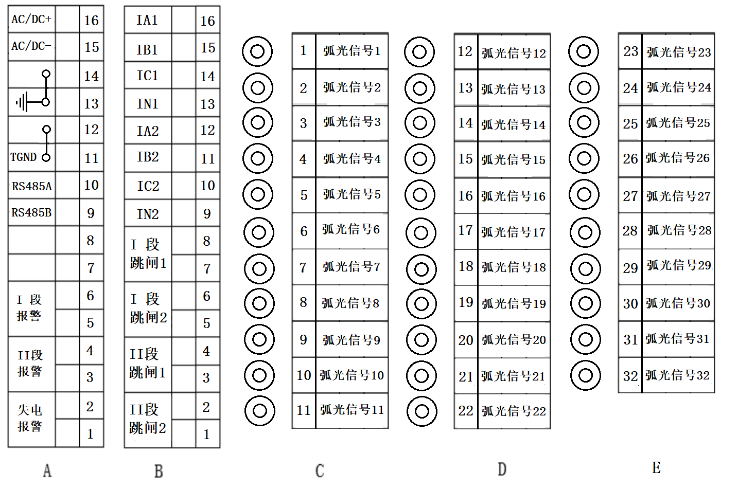 電纜型(D型)探頭背后端子接線(xiàn)圖