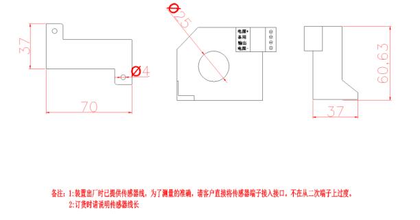 4、訂貨時主機默認配一個微電流互感器。最多配備三個微電流傳感器,訂貨期需說明。